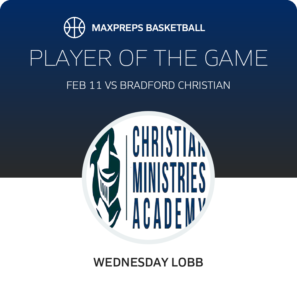 Congratulations to #1 Wednesday Lobb for being selected the Christian Ministries Academy Girls Basketball Player of the Game.