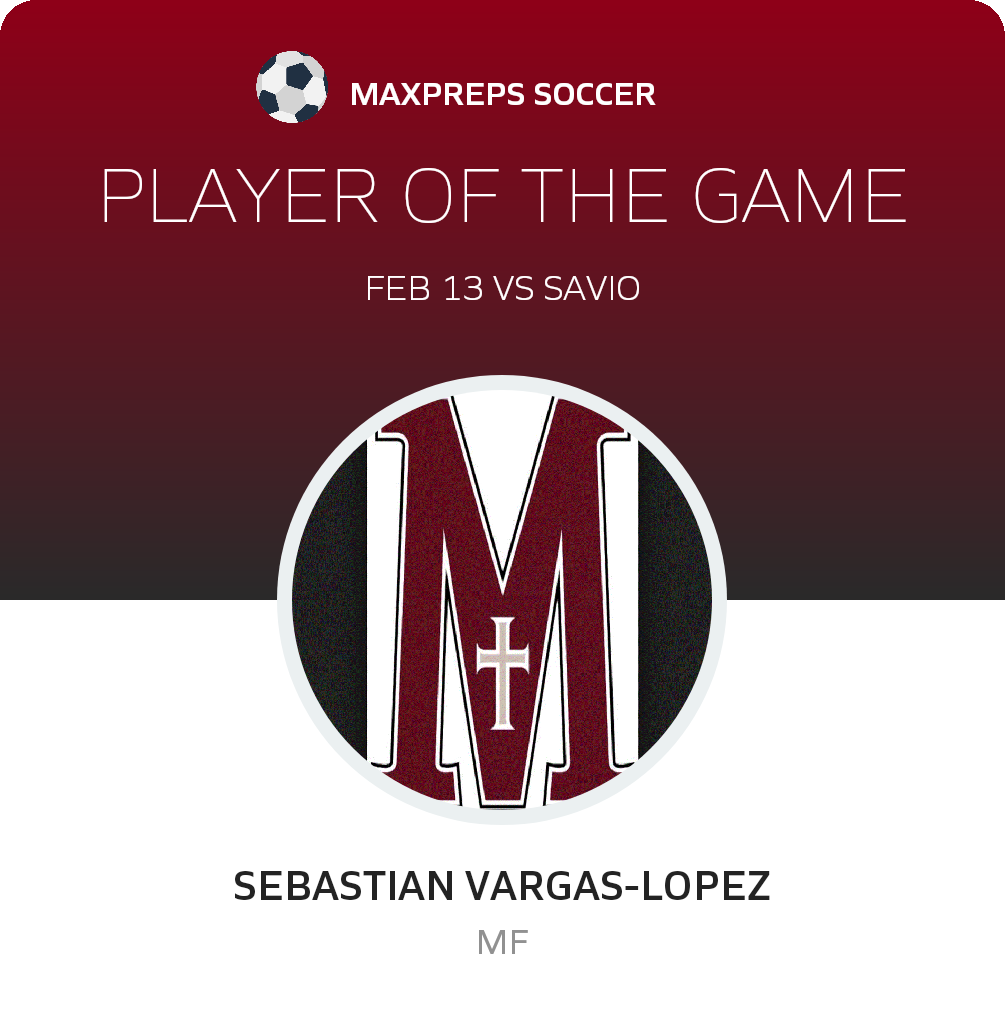 Congratulations to #10 Sebastian Vargas-Lopez for being selected the St. Michael's Soccer Player of the Match.