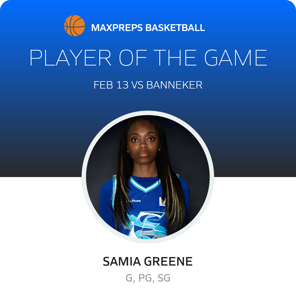 Congratulations to #4 Samia Greene for being selected the Eastern Girls Basketball Player of the Game.