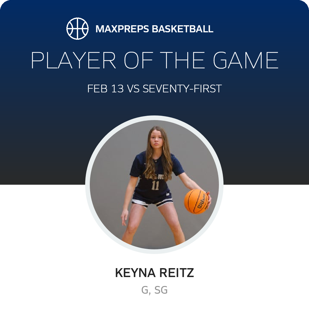 Congratulations to #11 Keyna Reitz for being selected the Purnell Swett Girls JV Basketball Player of the Game.