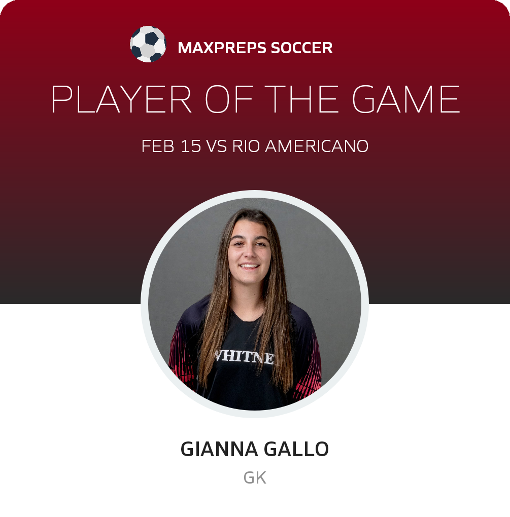 Congratulations to #21 Gianna Gallo for being selected the Whitney Girls Soccer Player of the Match.