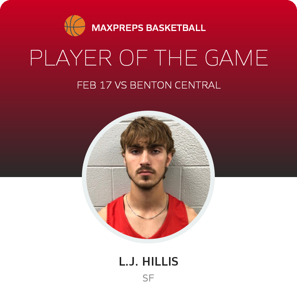 Congratulations to #21 L.j. Hillis for being selected the Lewis Cass Basketball Player of the Game.