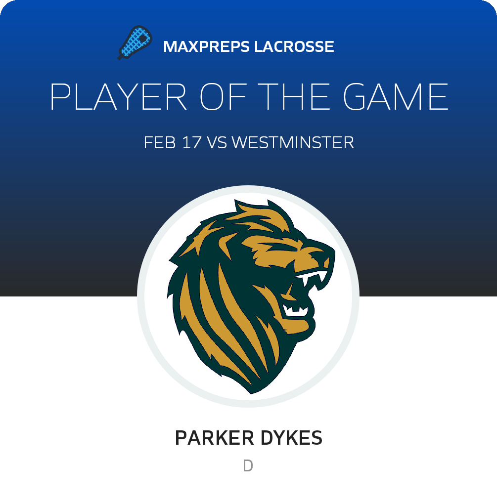Congratulations to #19 Parker Dykes for being selected the St. Pius X Catholic Girls Lacrosse Player of the Game.