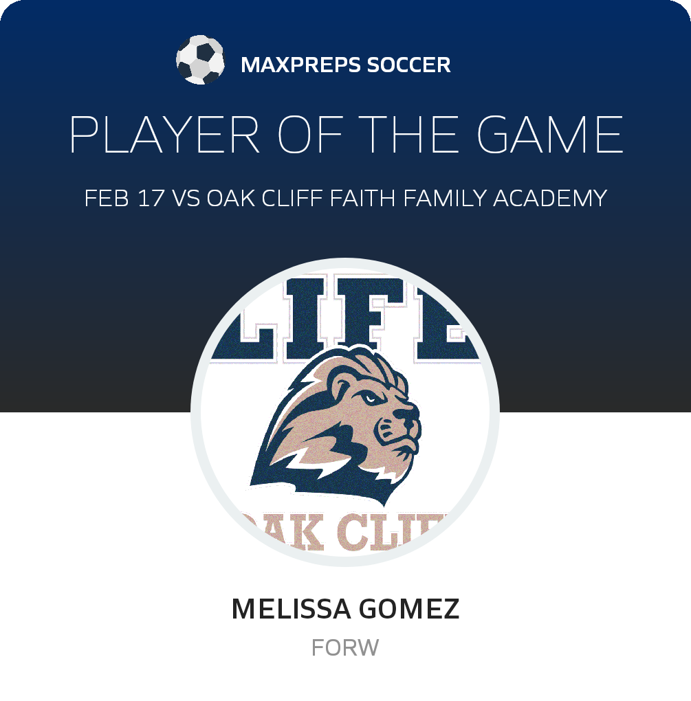 Congratulations to #7 Melissa Gomez for being selected the Life Oak Cliff Girls Soccer Player of the Match.