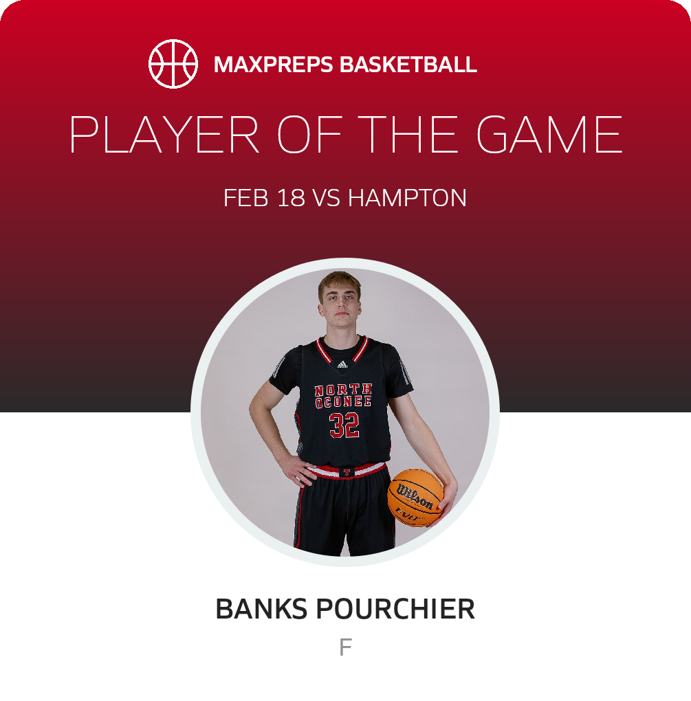 Congratulations to #32 Banks Pourchier for being selected the North Oconee Basketball Player of the Game.