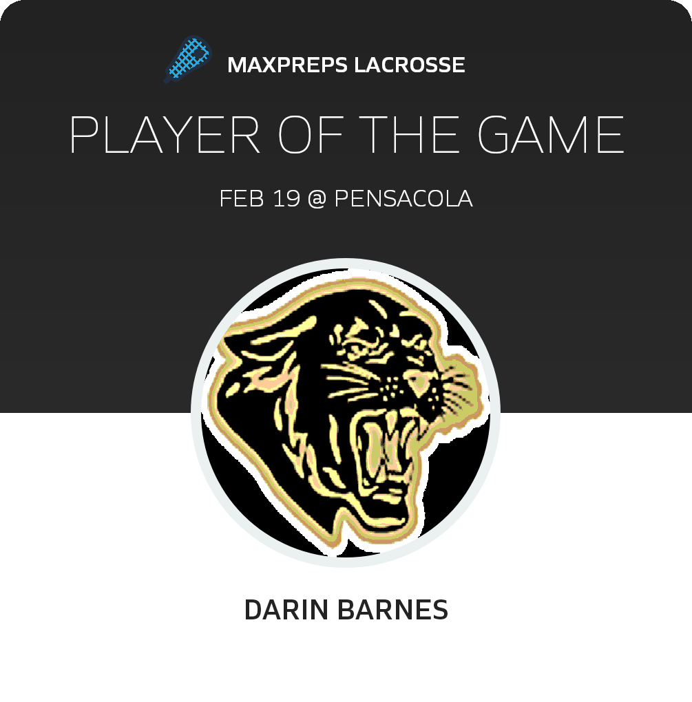 February 19, 2022: Pensacola, FL 32501 In Saturday's non-league battle, the Milton Panthers (Milton, FL) lacrosse squad routed the host Pensacola Tigers (Pensacola, FL), by a count of 12-4.