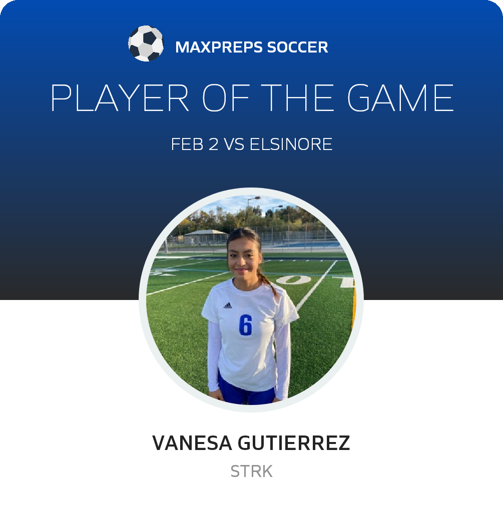 Congratulations to #2 Vanesa Gutierrez for being selected the Moreno Valley Girls Soccer Player of the Match.