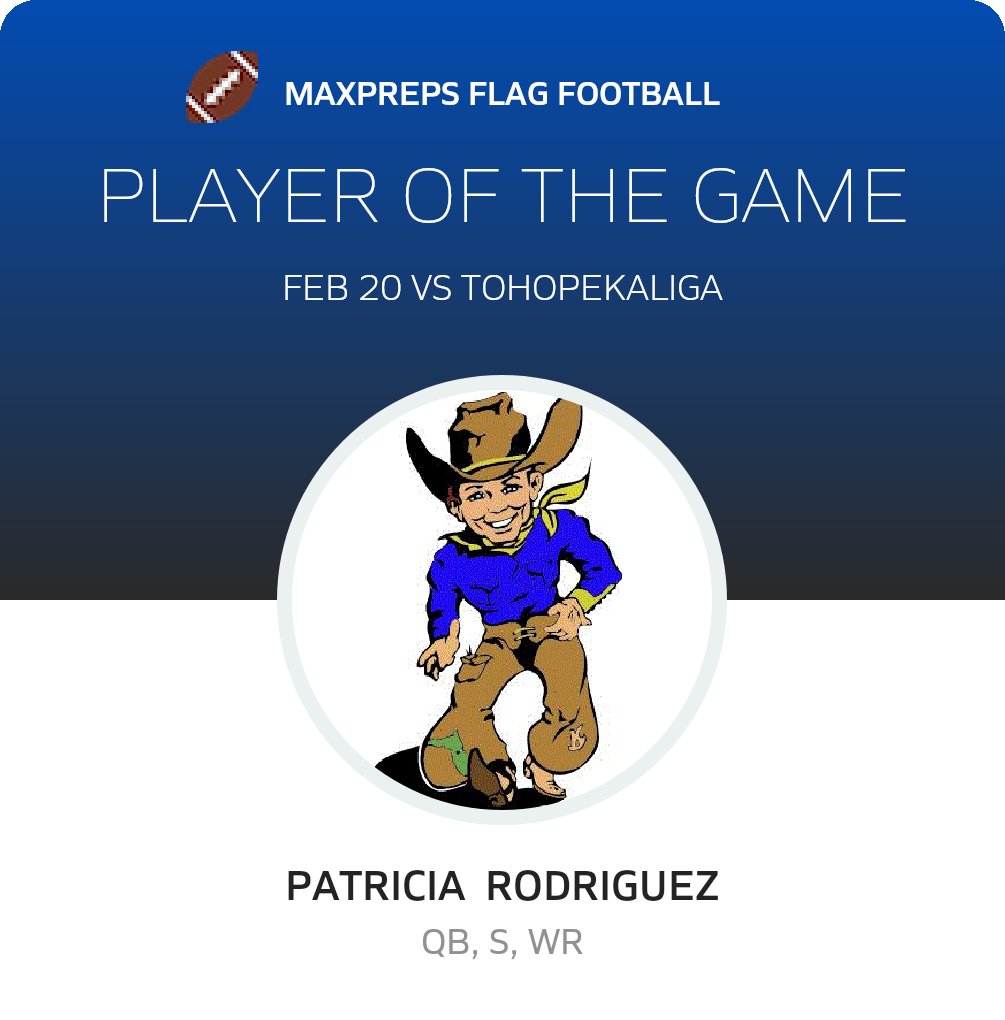 Congratulations to #18 Patricia Rodriguez for being selected the Osceola Girls Flag Football Player of the Game.