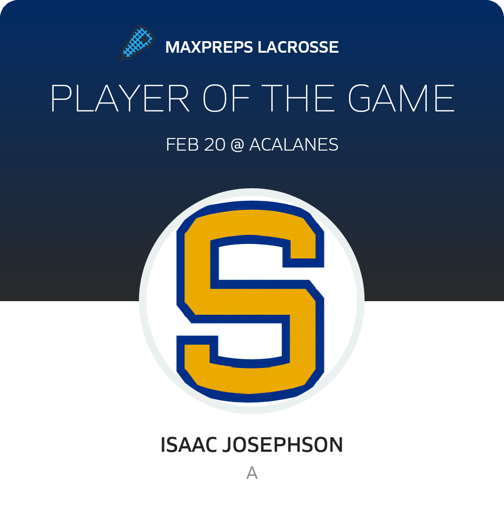 Congratulations to #10 Isaac Josephson for being selected the Junipero Serra JV Lacrosse Player of the Game.