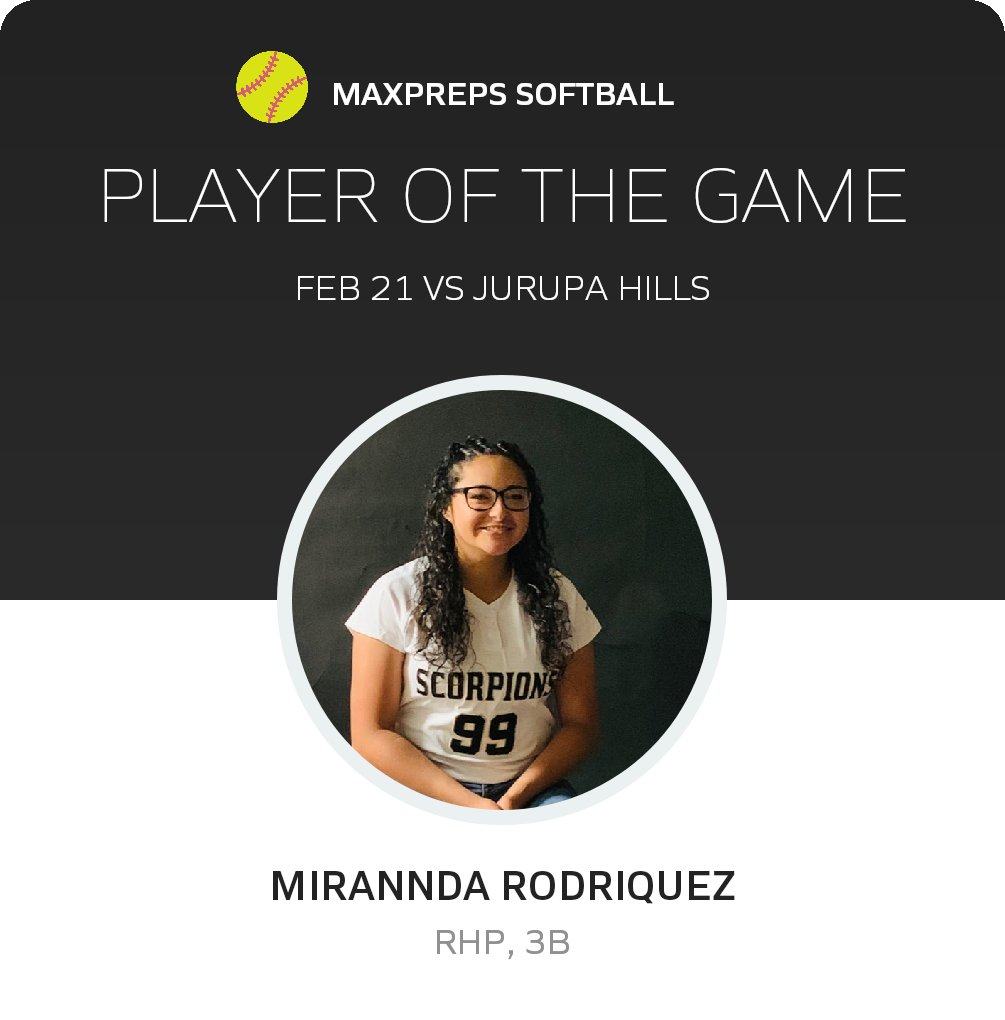 February 21, 2022: Hesperia, CA 92345 The Jurupa Hills Spartans (Fontana, CA) softball nipped the host Hesperia Scorpions (Hesperia, CA), 4-3 in Monday's non-league bout.