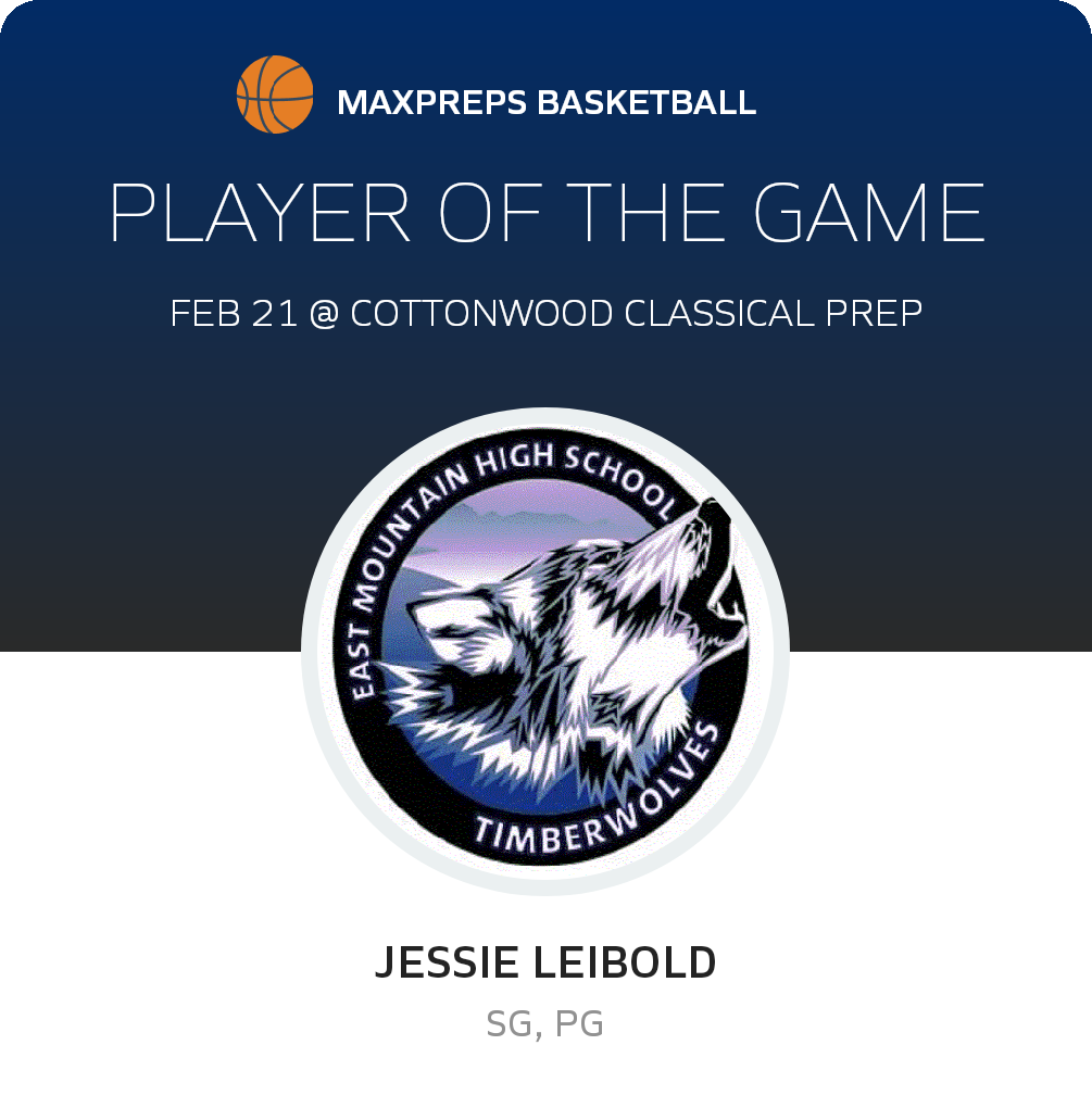 Congratulations to #5 Jessie Leibold for being selected the East Mountain Girls Basketball Player of the Game.