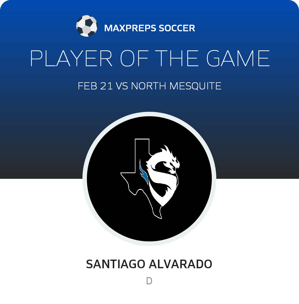 Congratulations to #20 Santiago Alvarado for being selected the Seagoville Soccer Player of the Match.
