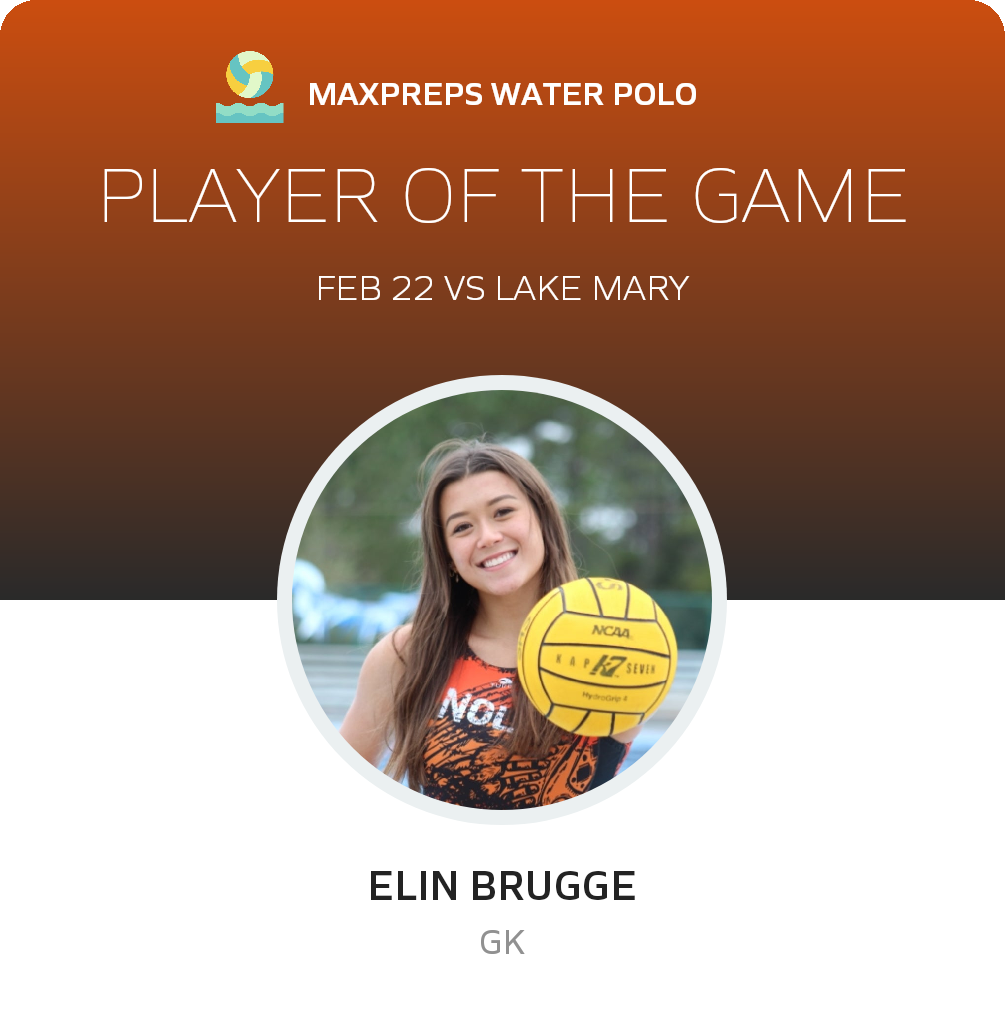 Congratulations to #5 Emma Bellars for being selected the Lake Mary Girls Water Polo Player of the Game.