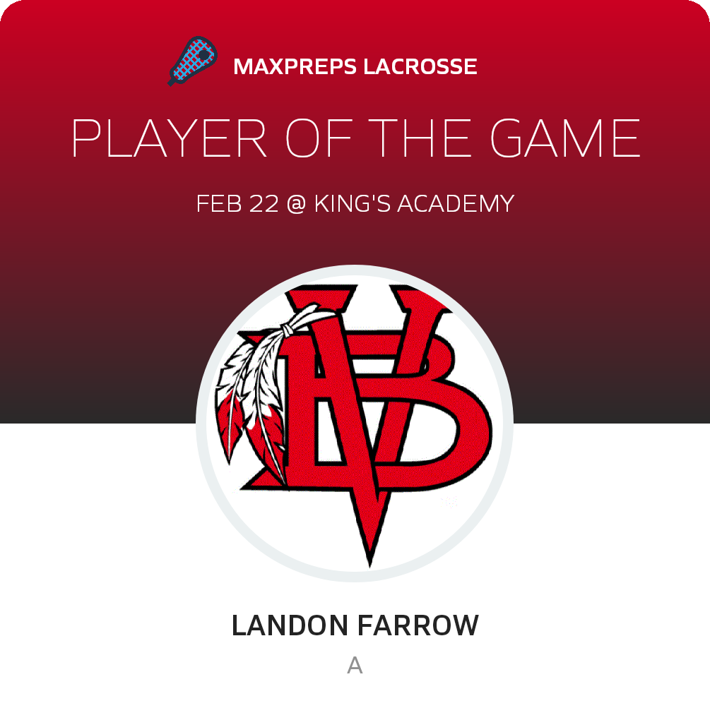 February 22, 2022: West Palm Beach, FL 33411 The Vero Beach Indians lacrosse squad scored 12 points and restricted the host King's Academy Lions to 9 in the Indians non-league victory on Tuesday.