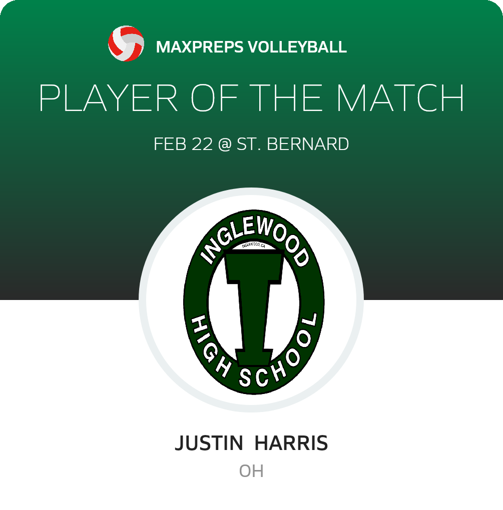 February 22, 2024: Playa del Rey, CA 90293 The Inglewood Sentinels volleyball team scored 3 points and limited the host St. Bernard Vikings to 0 in the Sentinels non-league victory on Thursday.