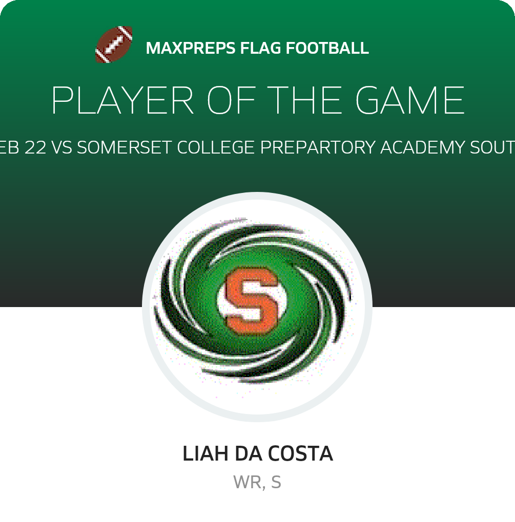 The Somerset Academy South Homestead (Homestead, FL) varsity flag football team won Thursday's home non-conference game against Somerset College Prepartory Academy South (Miami, FL) by a score of 52-0.