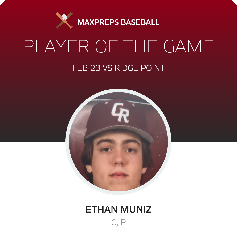 Congratulations to #20 Ethan Muniz for being selected the Cinco Ranch Baseball Player of the Game.