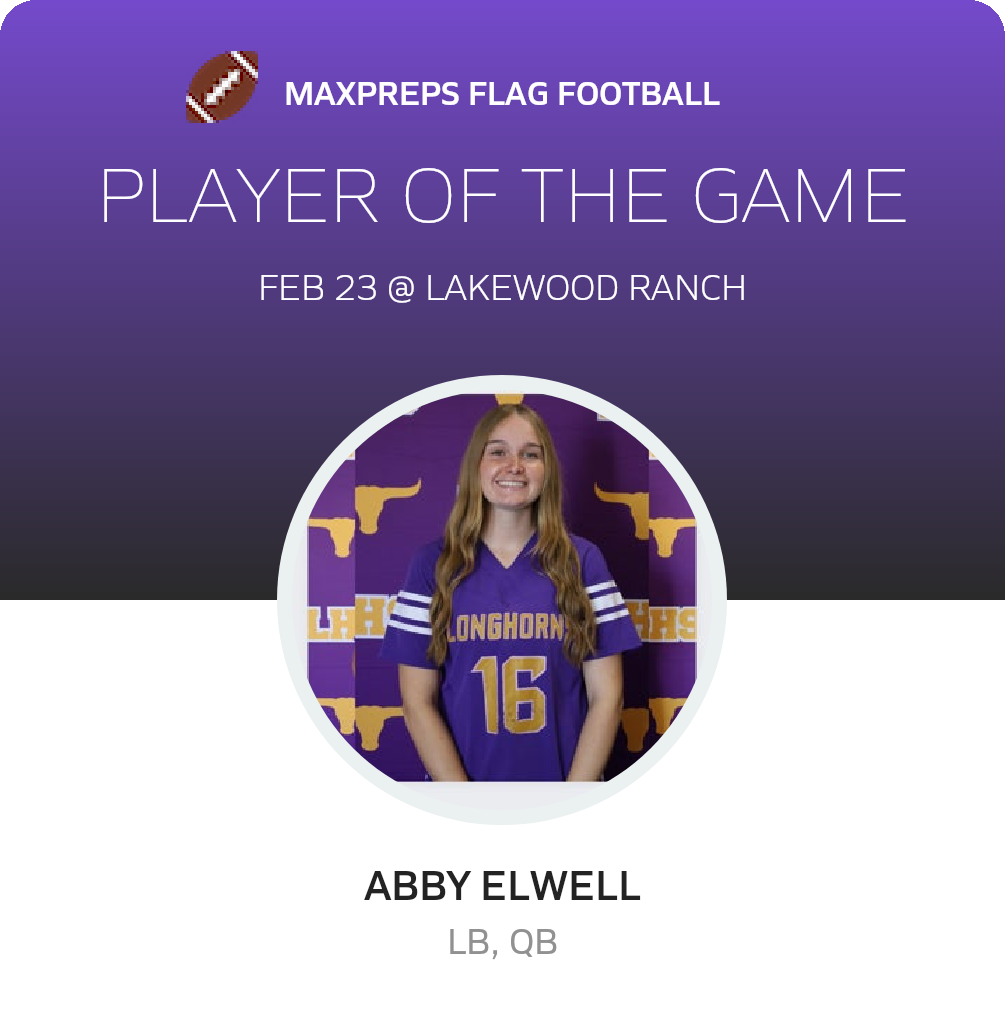 Congratulations to #16 Abby Elwell for being selected the Lennard Girls Flag Football Player of the Game.