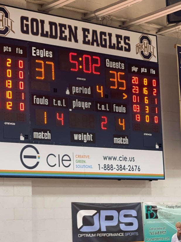 February 24, 2023: Converse, IN 46919 The Oak Hill Golden Eagles (Converse, IN) basketball knocked off the visiting Delta Eagles (Muncie, IN), 49-41 in Friday's non-league test.