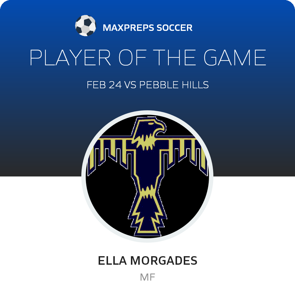 Congratulations to #21 Joanna Cano for being selected the Pebble Hills Girls Soccer Player of the Match.