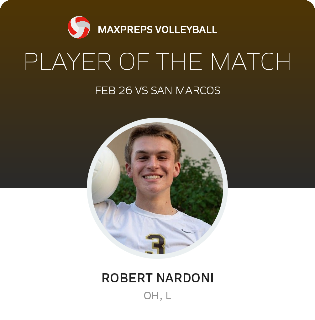 February 26, 2022: Santa Barbara, CA 93110 The St. Francis Golden Knights (La Canada, CA) volleyball overcame the host San Marcos Royals (Santa Barbara, CA), 2-0 in Saturday's non-league outing.