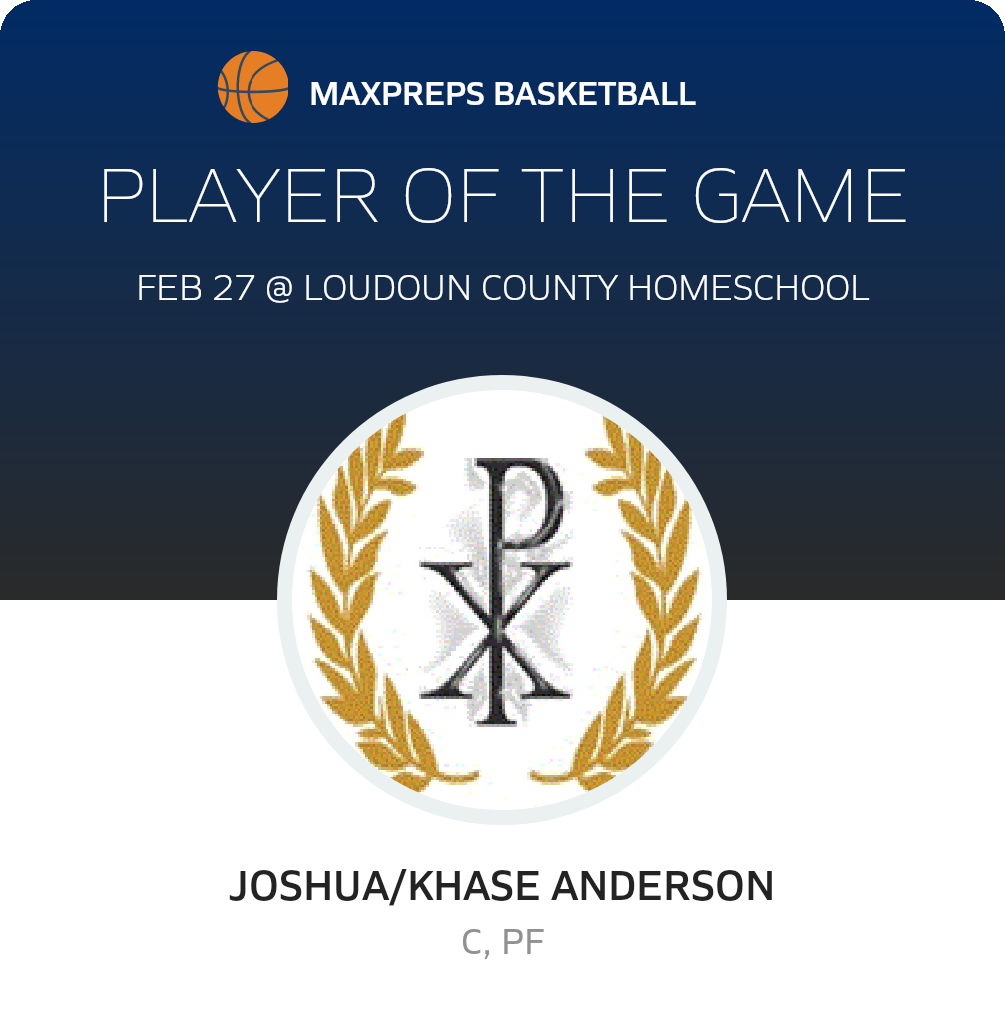 Congratulations to #15 Joshua/khase Anderson for being selected the Northern Virginia HomeSchool Basketball Player of the Game.