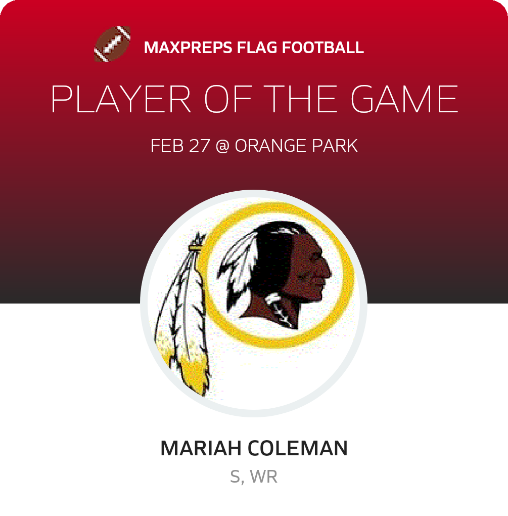 Congratulations to #1 Mariah Coleman for being selected the West Nassau Girls Flag Football Player of the Game.