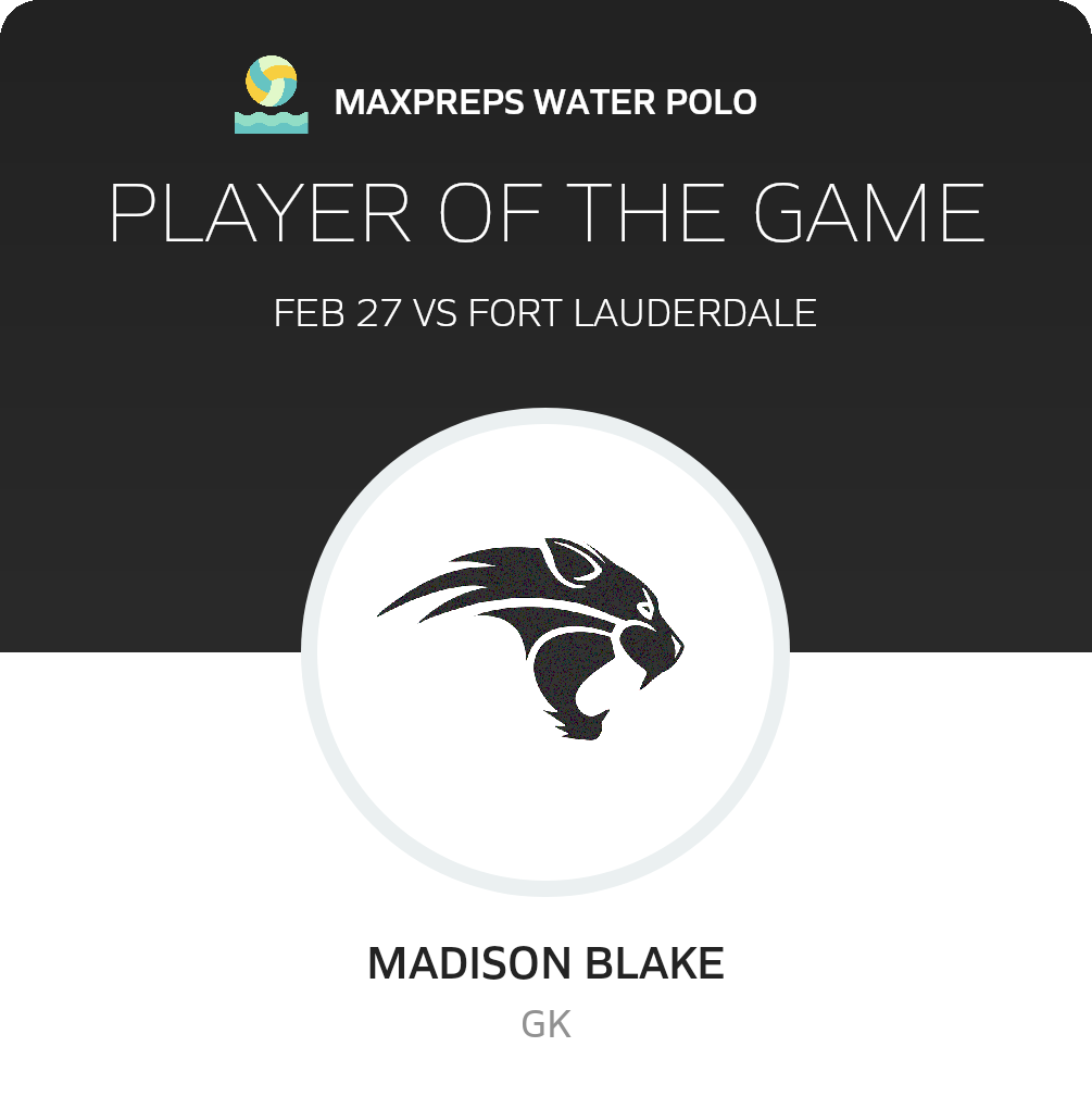 Congratulations to #1 Madison Blake for being selected the Western Girls Water Polo Player of the Game.
