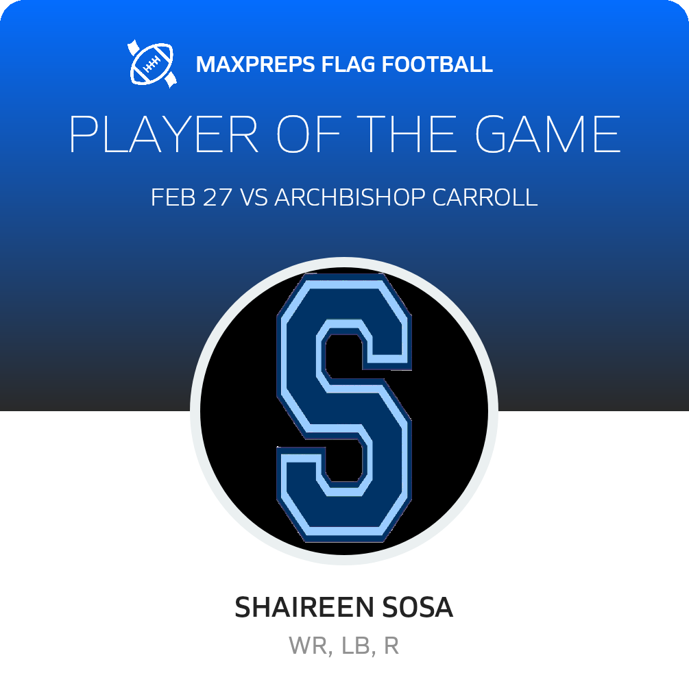 The Somerset Academy (Silver Palms) (Miami, FL) varsity flag football team won Thursday's home non-conference game against Archbishop Carroll (Miami, FL) by a score of 14-0.