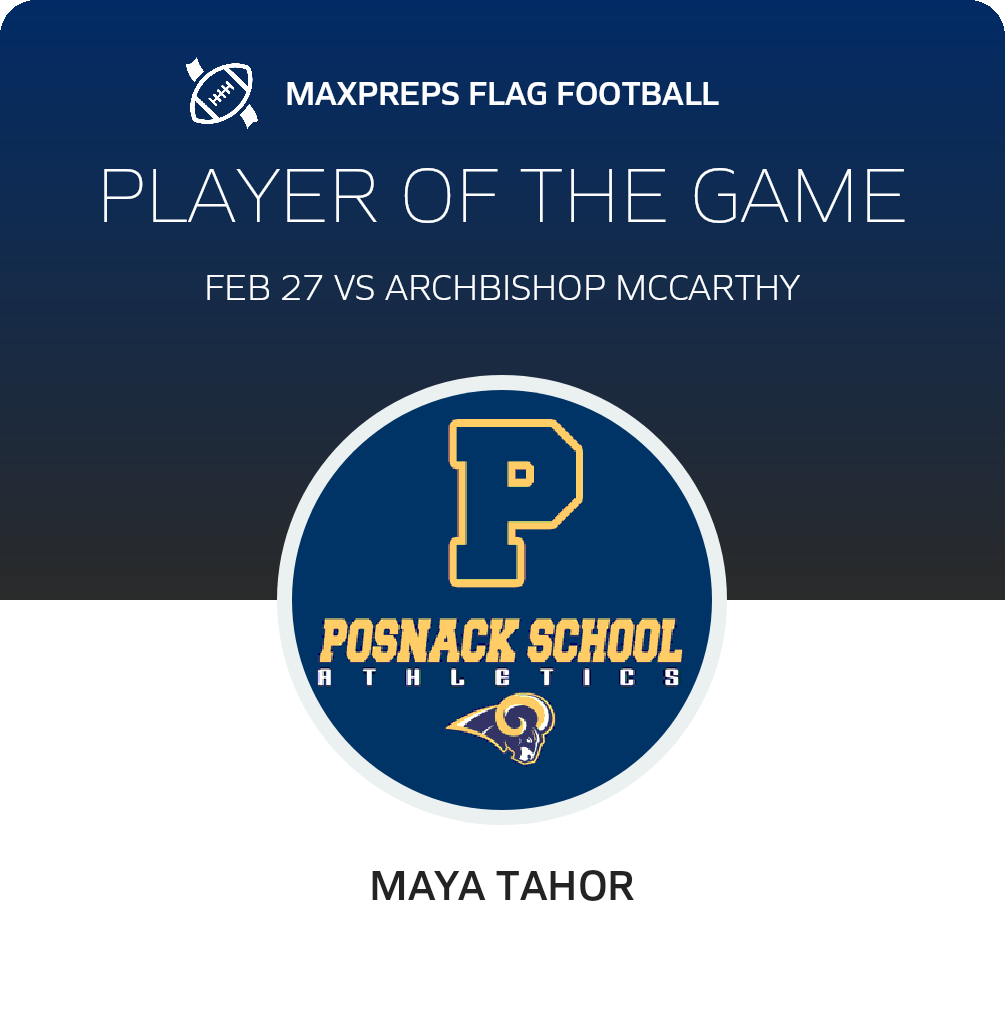 February 27, 2025: Davie, FL 33328 In Thursday's non-league game, the David Posnack Jewish Day Rams (Davie, FL) flag football team overcame the visiting Archbishop McCarthy Mavericks (Fort Lauderdale, FL), by a tally of 30-7.