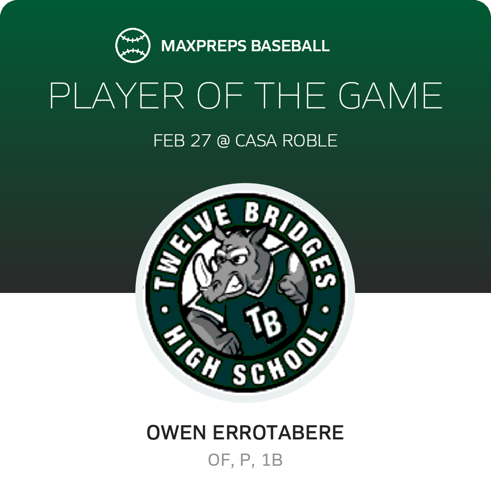 February 27, 2026: Orangevale, CA 95662 The Twelve Bridges Raging Rhinos (Lincoln, CA) baseball the host Casa Roble Rams (Orangevale, CA), 6-2 in Friday's non-league challenge.