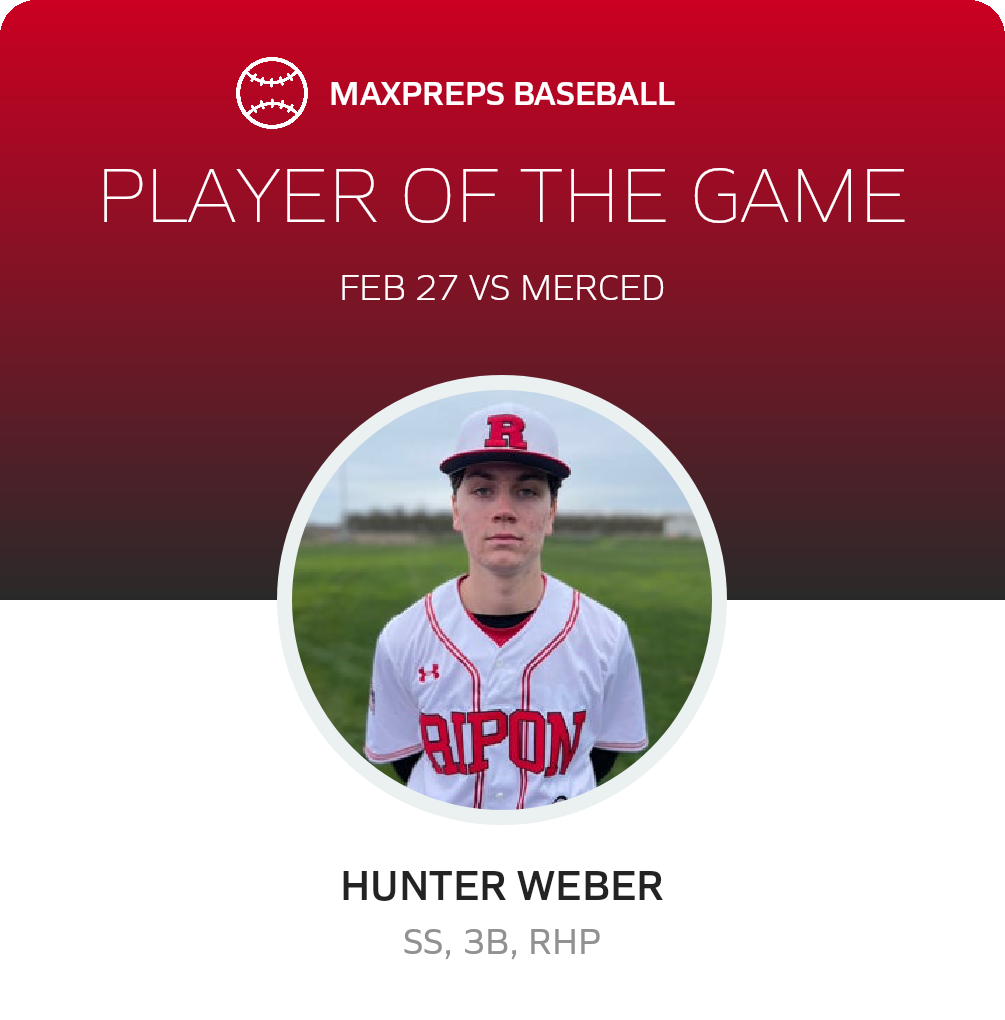 Congratulations to #24 Hunter Weber for being selected the Ripon Baseball Player of the Game.