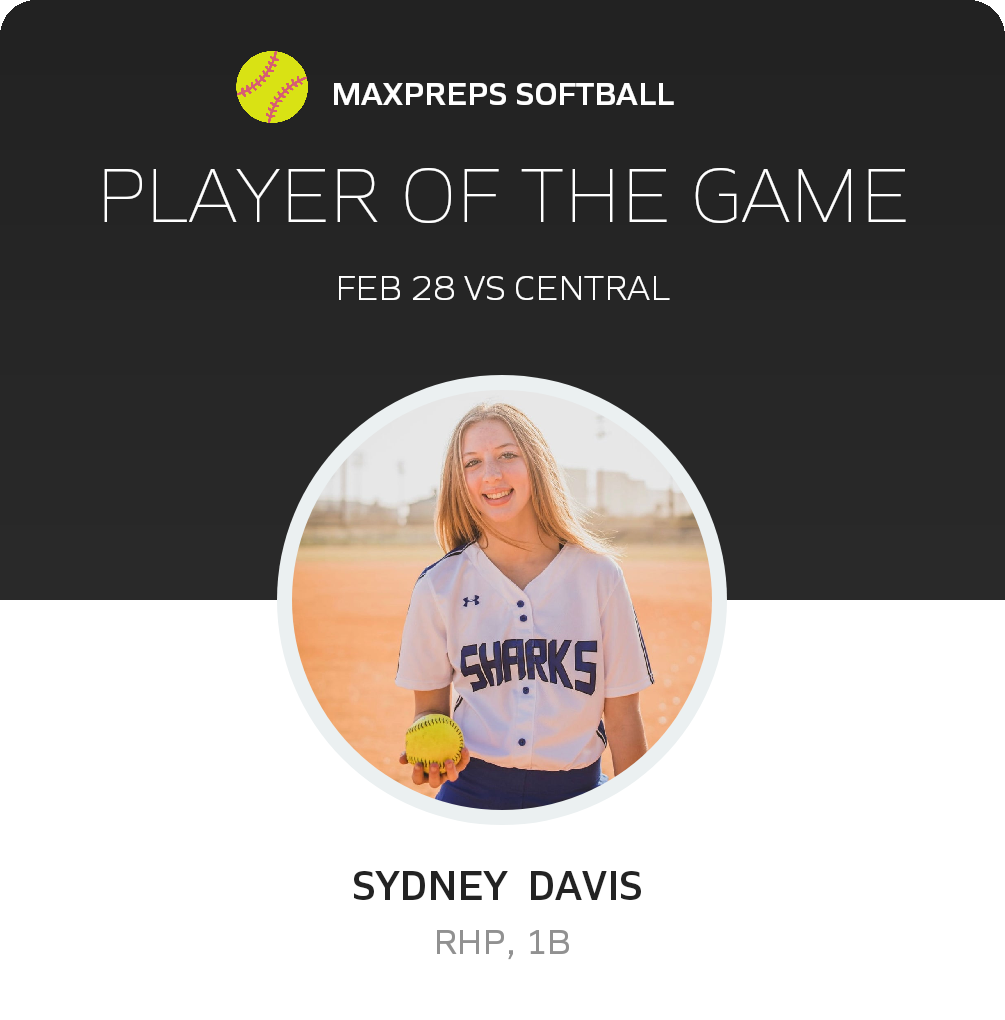 Congratulations to #13 Sydney Davis for being selected the Destin Softball Player of the Game.