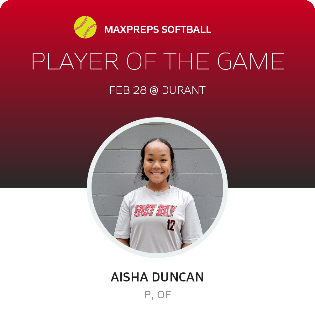 February 28, 2022: Plant City, FL 33567 Durant Cougars (Plant City, FL) backers exited the stadium thrilled Monday as they saw their softball squad achieve victory over the visiting East Bay Indians (Gibsonton, FL), 11-1 in a non-league challenge.