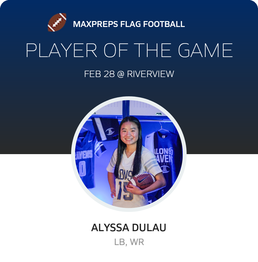 Congratulations to #15 Alyssa Dulau for being selected the Alonso Girls JV Flag Football Player of the Game.