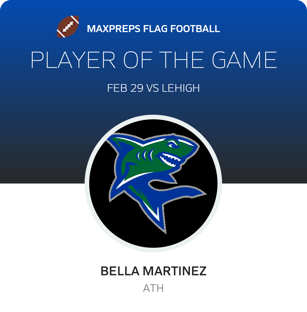 The Bonita Springs (FL) varsity flag football team won Thursday's home non-conference game against Lehigh (Lehigh Acres, FL) by a score of 6-0.