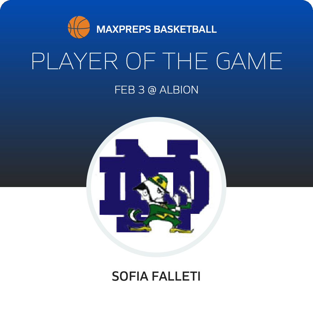 Congratulations to #44 Sofia Falleti for being selected the Notre Dame Girls Basketball Player of the Game.