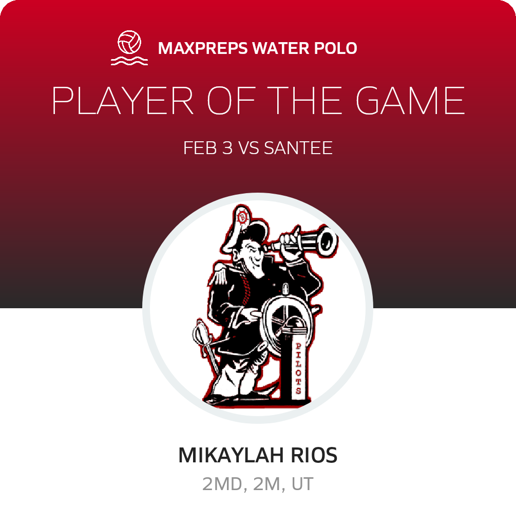 Congratulations to #3 Mikaylah Rios for being selected the Banning Girls Water Polo Player of the Game.
