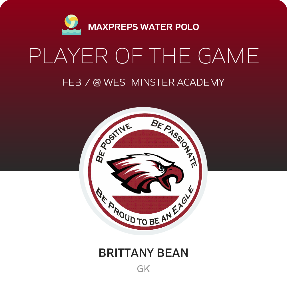 Congratulations to #1 Brittany Bean for being selected the Stoneman Douglas Girls Water Polo Player of the Game.