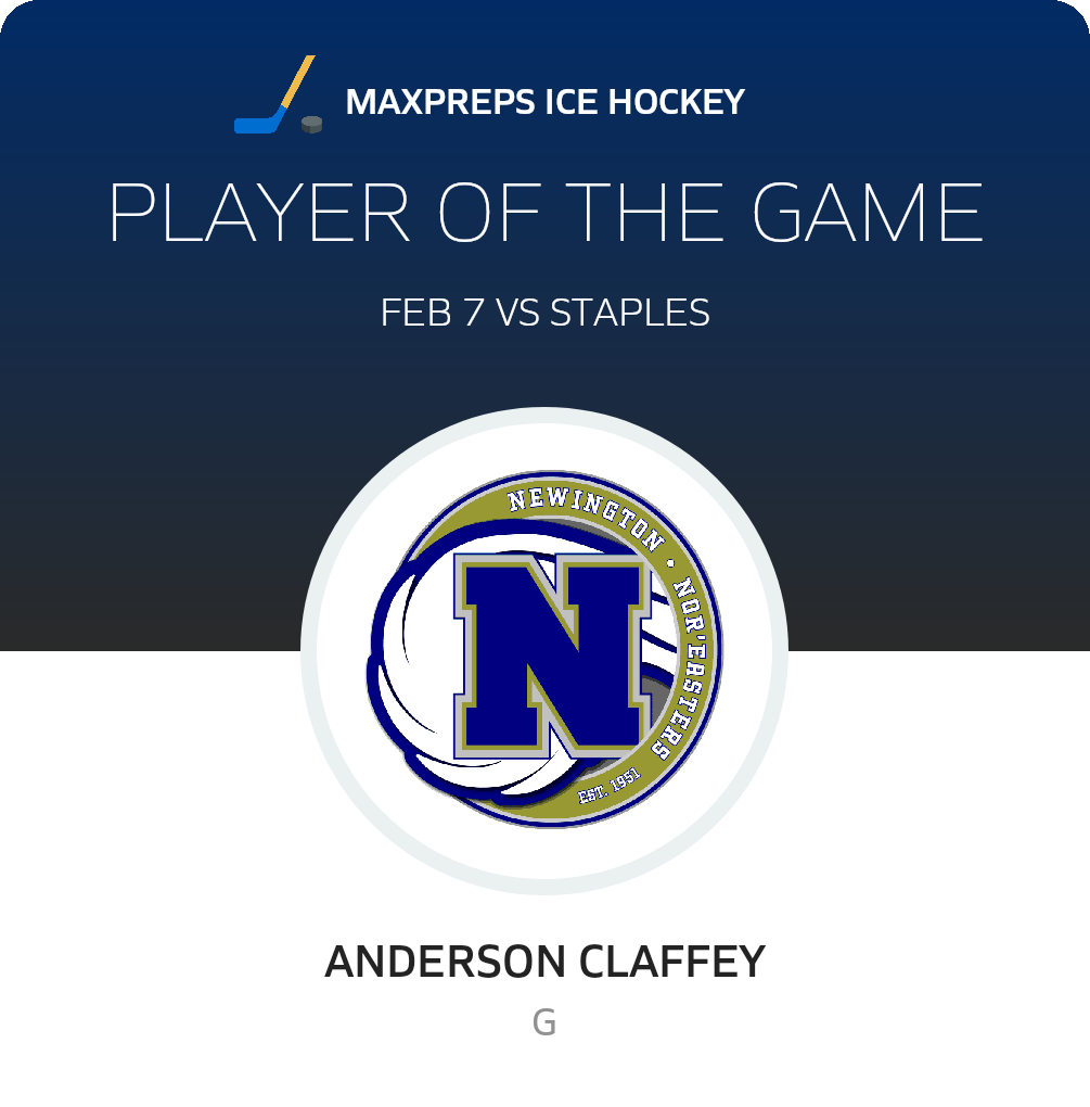 Congratulations to #29 Anderson Claffey for being selected the Newington Co-op Ice Hockey Player of the Game.