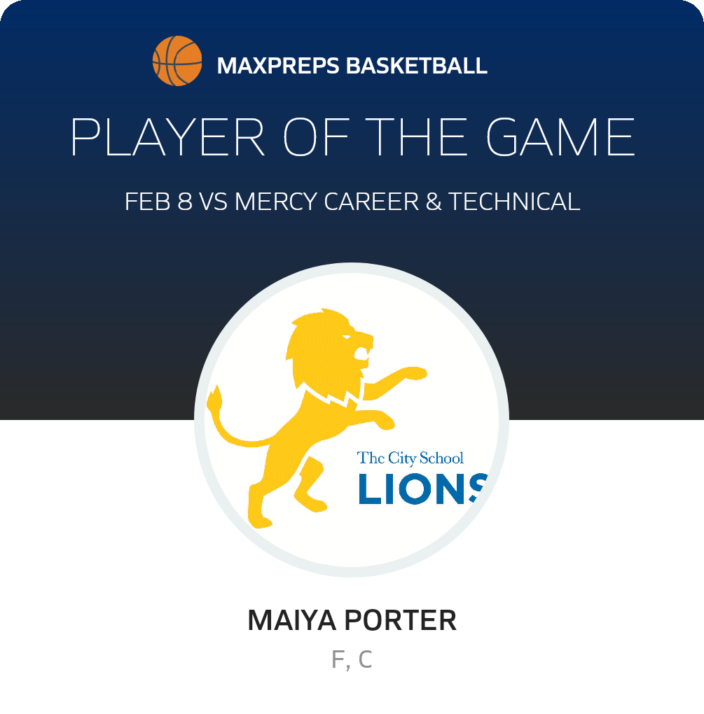 Congratulations to #25 Maiya Porter for being selected the The City School Girls Basketball Player of the Game.