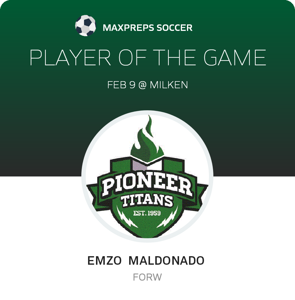 Congratulations to #3 Emzo Maldonado for being selected the Pioneer Soccer Player of the Match.