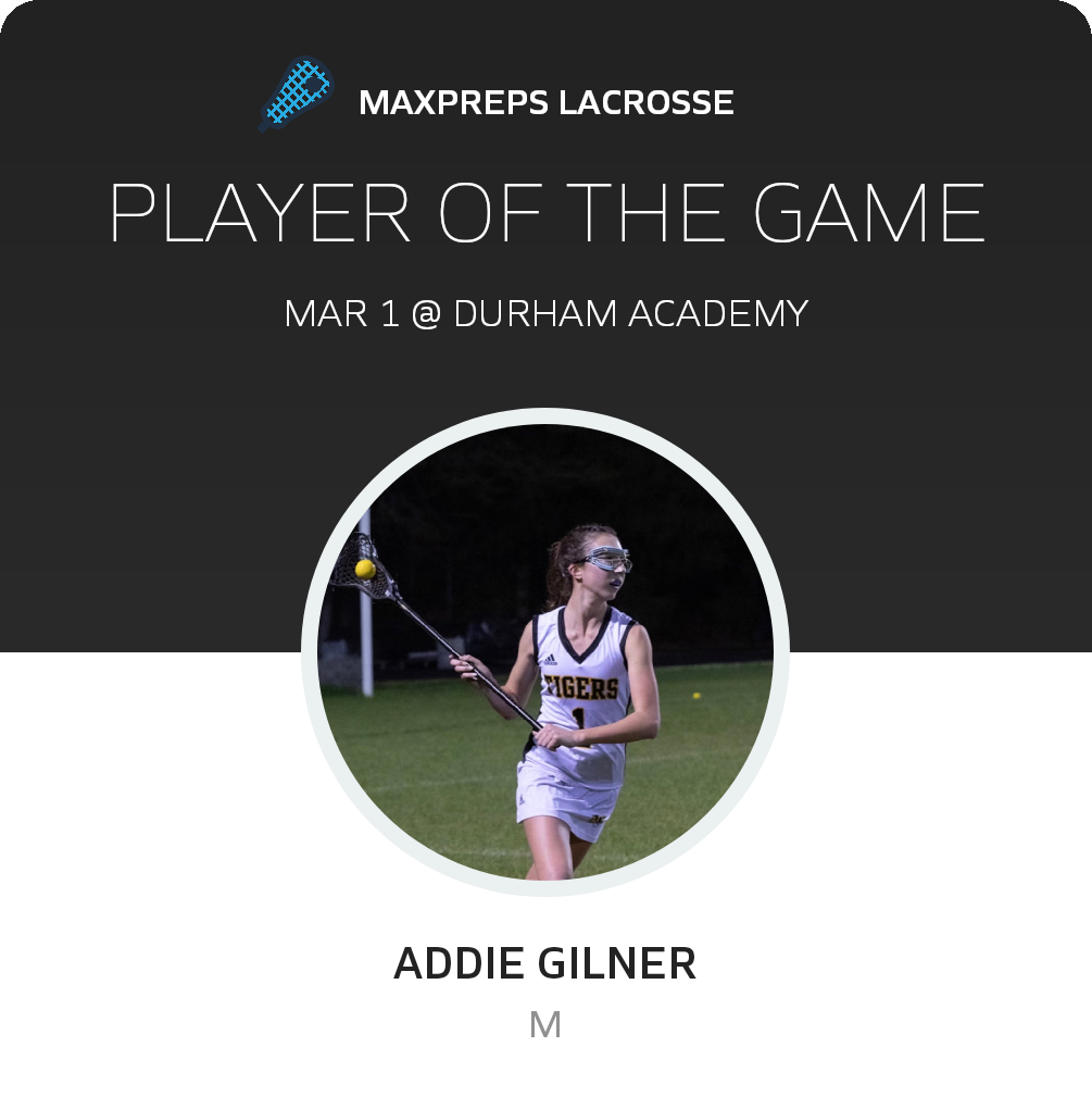 Congratulations to #1 Addie Gilner for being selected the Chapel Hill Girls Lacrosse Player of the Game.
