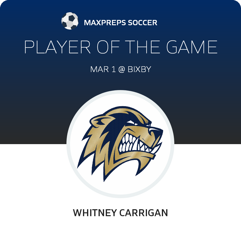 Congratulations to #23 Whitney Carrigan for being selected the Bentonville West Girls Soccer Player of the Match.