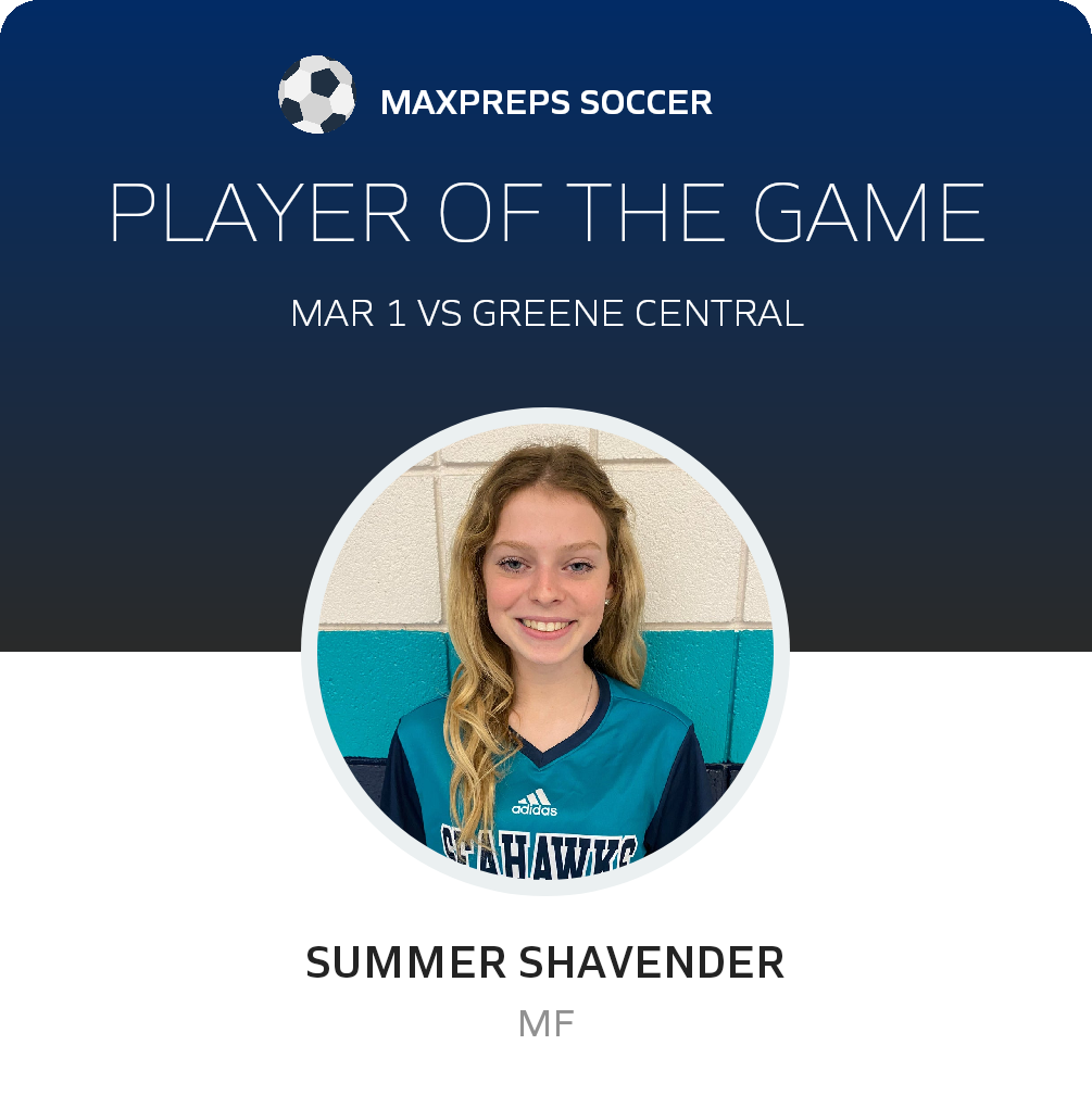Congratulations to #6 Summer Shavender for being selected the Southside Girls Soccer Player of the Match.