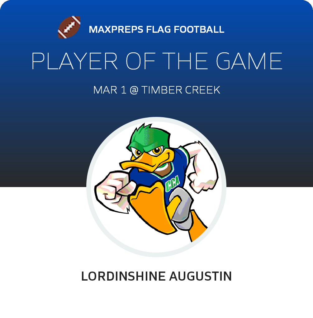 Congratulations to #3 Jarlene Duarte for being selected the Timber Creek Girls Flag Football Player of the Game.