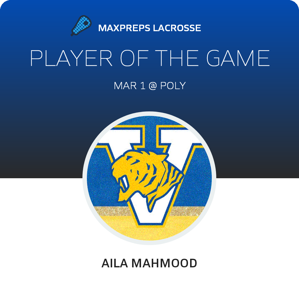 March 1, 2023: Riverside, CA 92506 The Poly Bears lacrosse squad (Riverside, CA), was nipped 16-15 in Wednesday's non-league challenge with the visiting Valencia Tigers (Placentia, CA)
