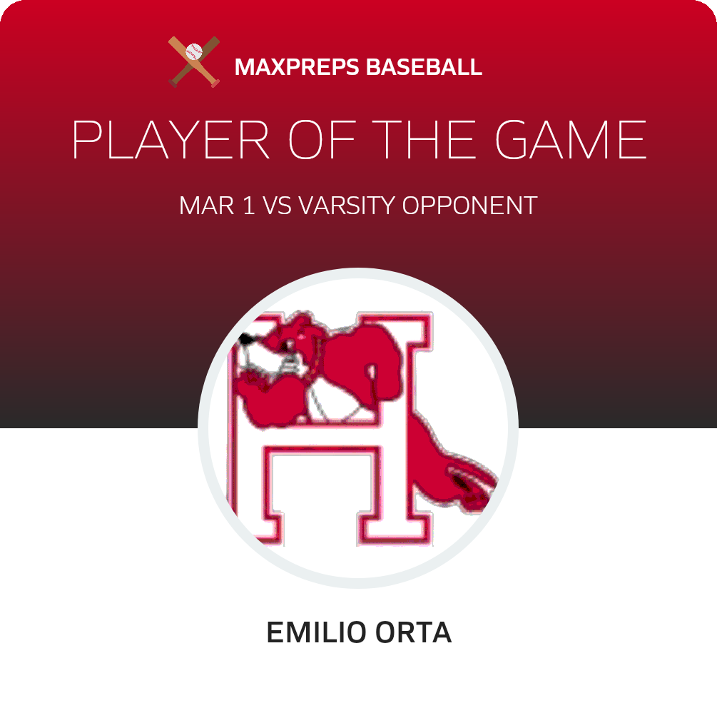 Congratulations to #37 Emilio Orta for being selected the Hubbard Baseball Player of the Game.