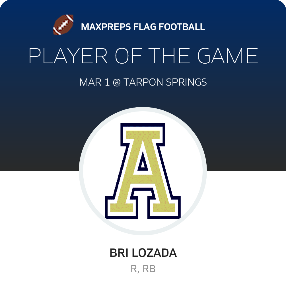 Congratulations to #7 Bri Lozada for being selected the Alonso Girls JV Flag Football Player of the Game.