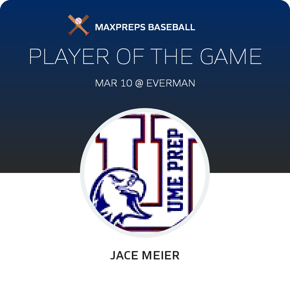 Congratulations to #7 Jace Meier for being selected the UME Preparatory Academy Baseball Player of the Game.